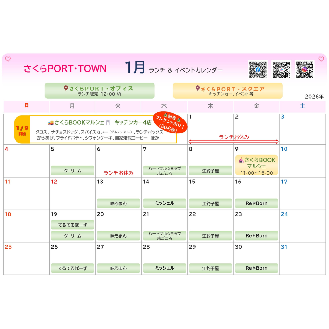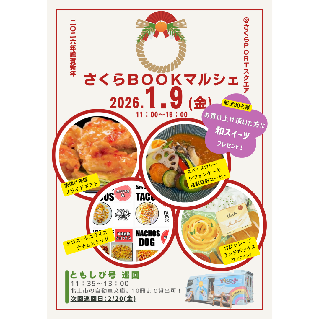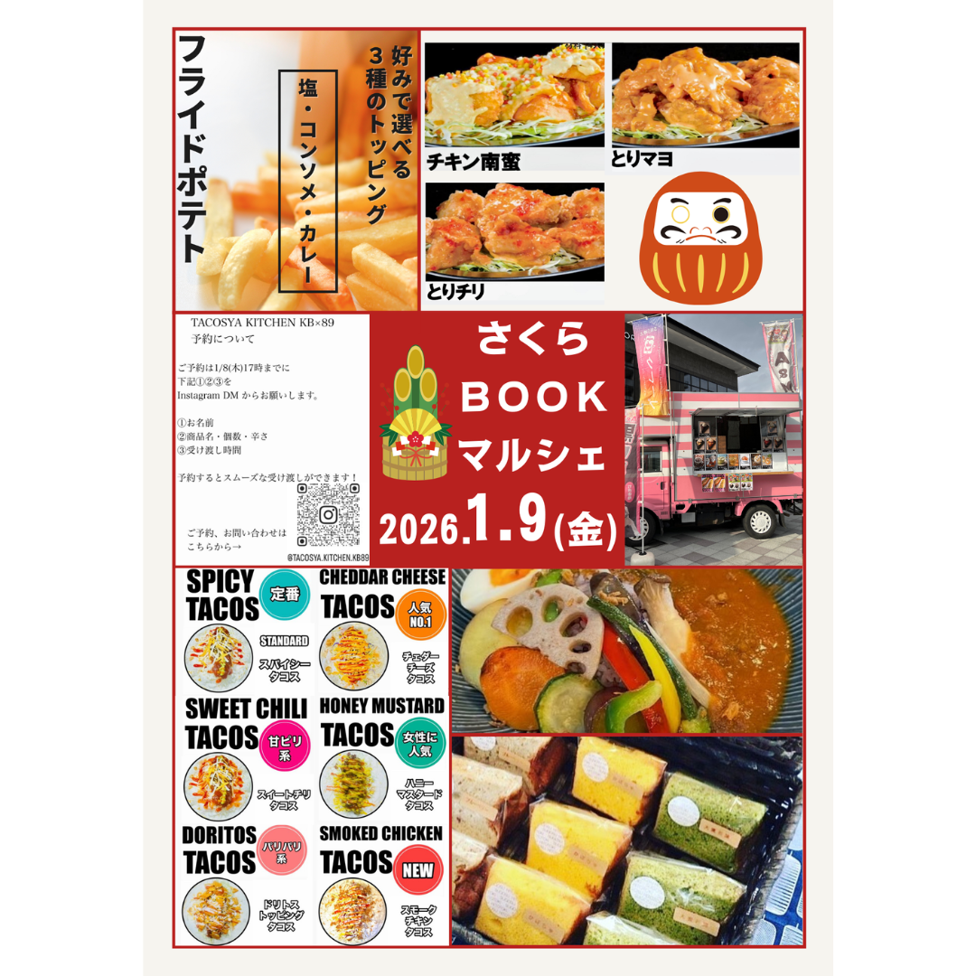 #さくらBOOKマルシェ #新春プレゼント #キッチンカー #和スイーツ #スパイスカレー #タコス #ランチボックス #からあげ #フードフェス #さくらPORT